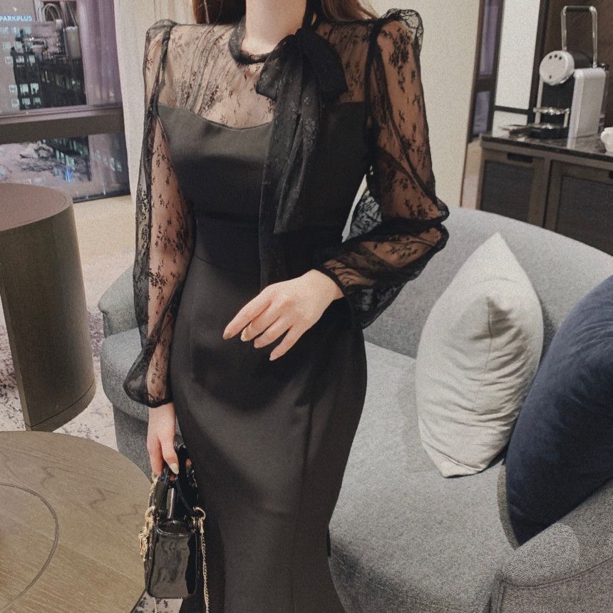 シースルー長袖 胸元リボンタイ 膝丈タイトワンピース ピンク 発表会 かわいい レディース 服 xzdssxjの検索結果