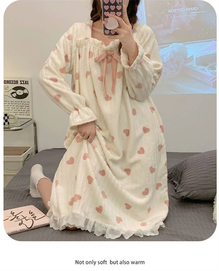ナイトガウン レディース ルームワンピース 長袖 ロングワンピ パジャマ フランネル 秋冬 ハート柄 暖かい 寝巻き モコモコ 部屋着 保温 柔らかいXZ0524の検索結果