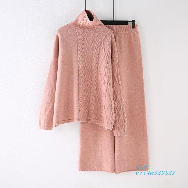 セットアップ レディース ニット 秋冬 ニット セーター ワイドパンツ 上下セット ハイネック チノパン 長袖 カジュアル ゆったり pai5a478213