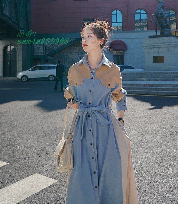 デニムワンピース シャツワンピース 長袖 デニム ワンピース レディース 大きいサイズ 春 Aライン ファッション 韓国 秋 3L ウエストマーク ロングコート am4a853968 BLACKFEMALETHERAPIST_ORG