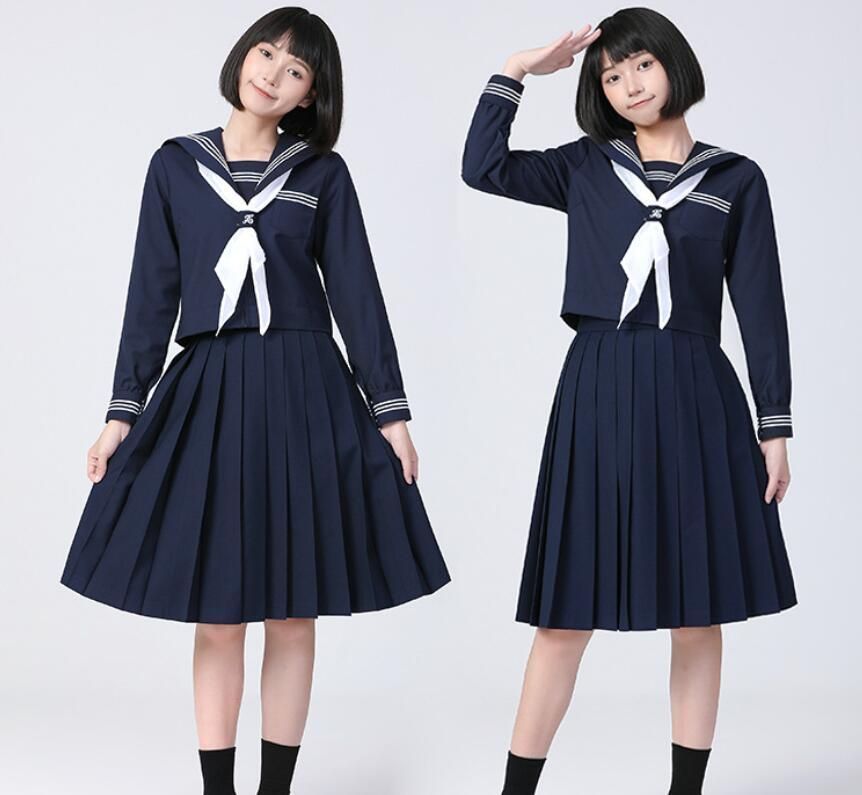 セーラー服 紺色 女子高生 3点セット 仮装 JK 制服 コスチューム 長袖 上下セット プリーツスカート 女子制服 高校生 本格制服 三本線 紺三本 文化祭 学.歳 卒業式 清純 ハロウィンyunrui19 BLACKFEMALETHERAPIST_ORG