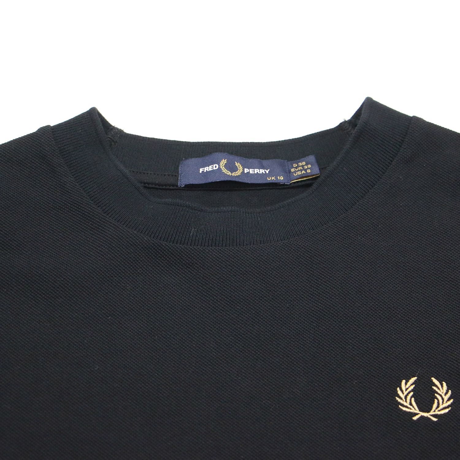 FRED PERRY フレッドペリー ワンピース ブラック ベージュ サイズ UK10 M 鹿の子 ライン入り Tシャツ ワンピース ミニ丈 半袖 クルーネック コットン トップス ドレス レディース BLACKFEMALETHERAPIST_ORG