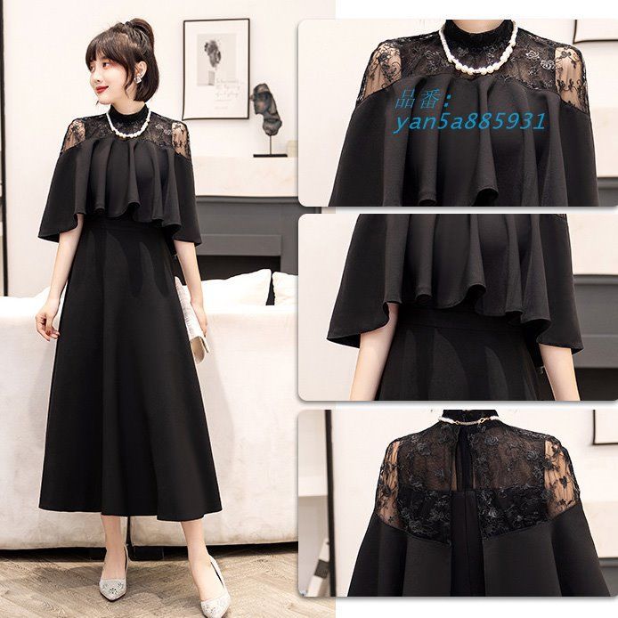 総レース ドレス ワンピース 長袖 春 秋 ミモレ丈 レディース ゆったり パーティードレス フォーマル yan5a150333