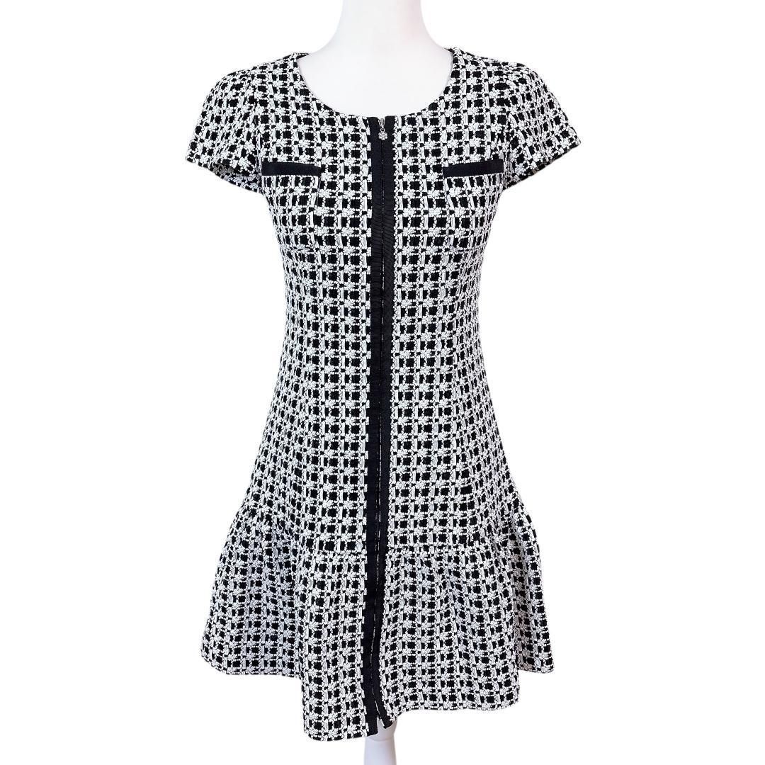 エムズグレイシー 半袖ワンピース フロントジップ 36 チェック 黒×白の検索結果