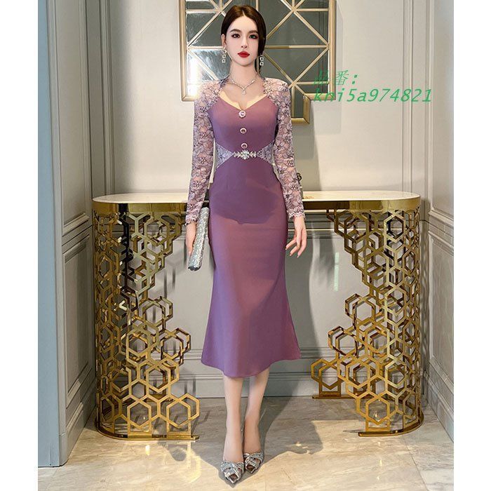 レース刺繍長袖 胸元開き前ボタン ロング丈タイトドレスワンピース 紫 結婚式 お呼ばれ ドレス おしゃれきれいめ 韓国 kni5a974821の検索結果