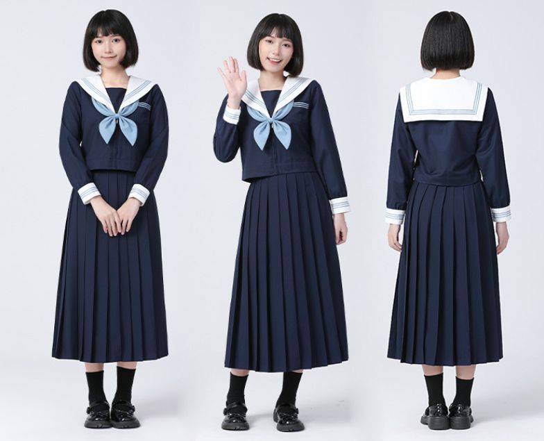 場面を選ばない本物のセーラー服 冬服 紺 前開 通学用 制服 礼服 結婚式 葬儀 遊び着 私服校の日常通学用に