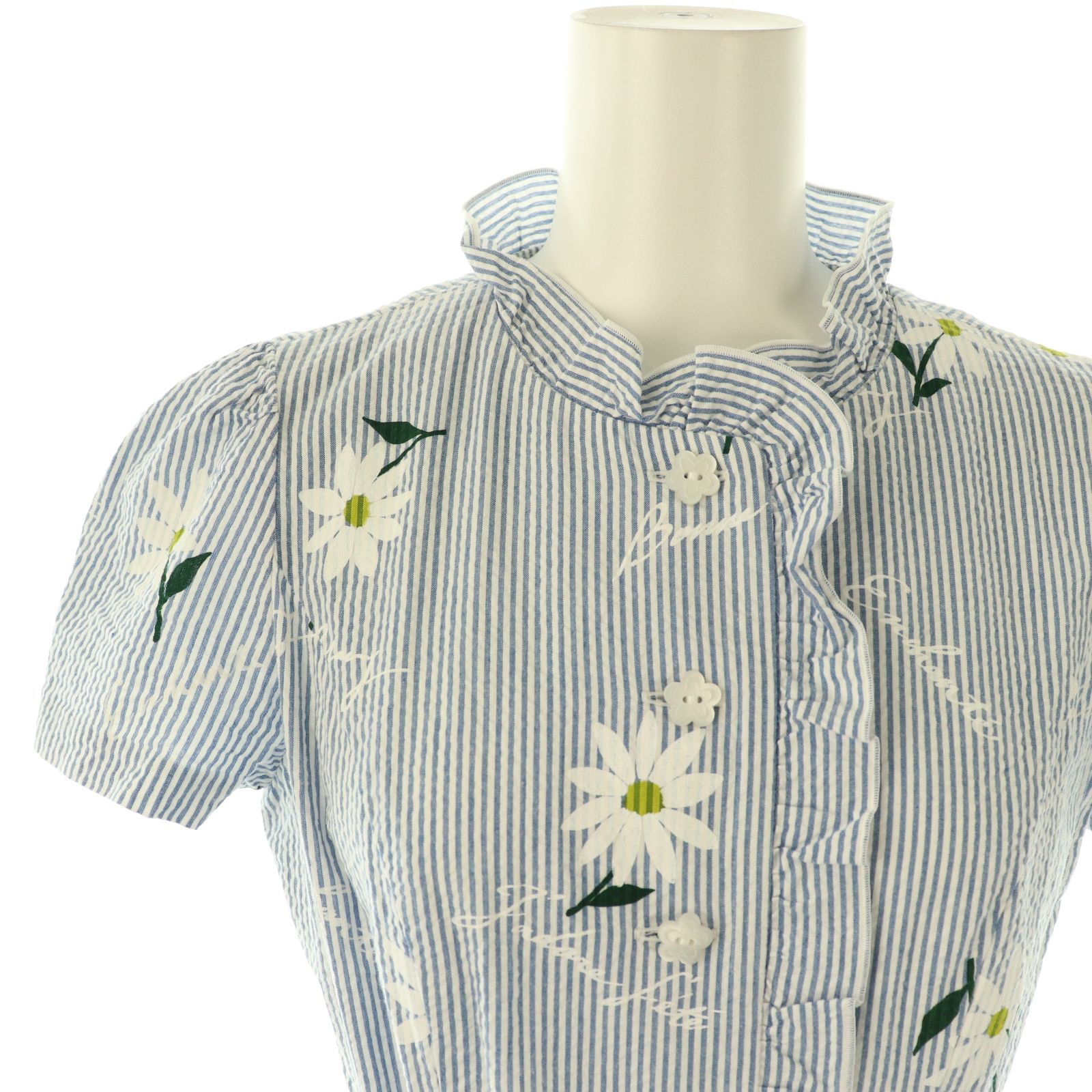 エムズグレイシー M S GRACY 23年製 カタログ掲載 花柄ストライプ半袖ワンピース ミモレ ロング 36 白 ライトブルー NR OS BLACKFEMALETHERAPIST_ORG