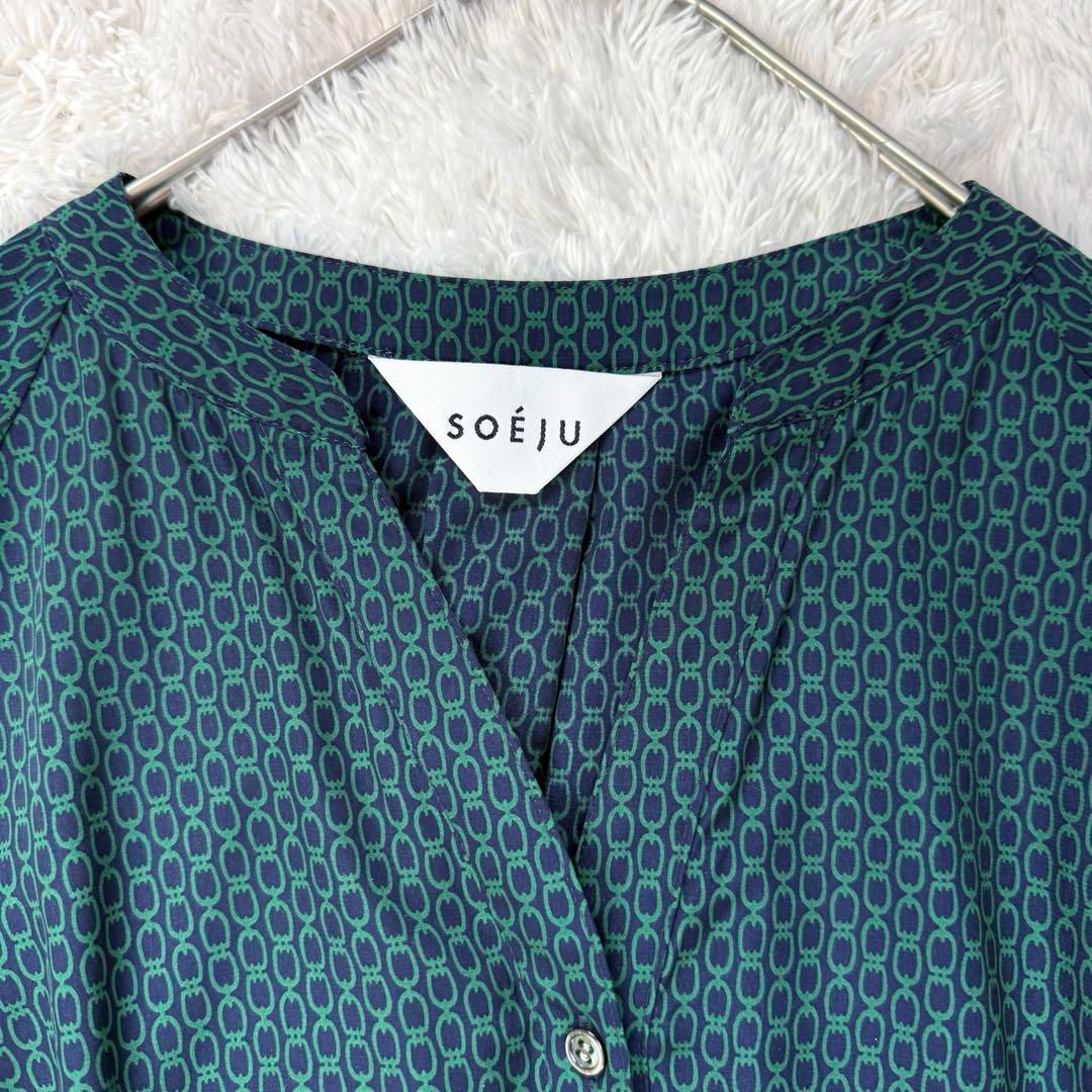 SOEJU ソージュ チェーン柄ワンピース ネイビー グリーン スキッパー 長袖 シャツ F フリーサイズ 定価約2万 ロング丈 総柄の検索結果