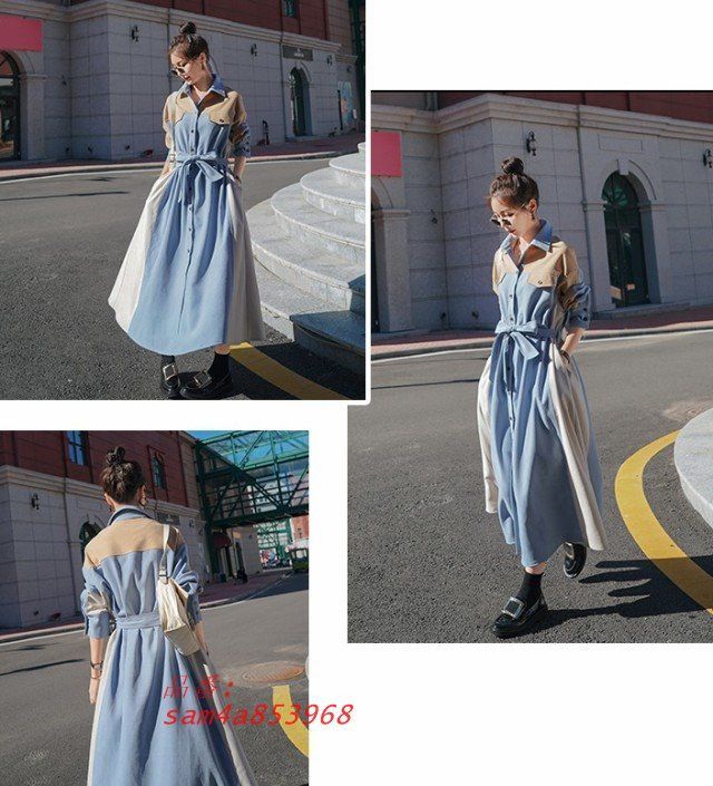 デニムワンピース シャツワンピース 長袖 デニム ワンピース レディース 大きいサイズ 春 Aライン ファッション 韓国 秋 3L ウエストマーク ロングコート am4a853968 BLACKFEMALETHERAPIST_ORG