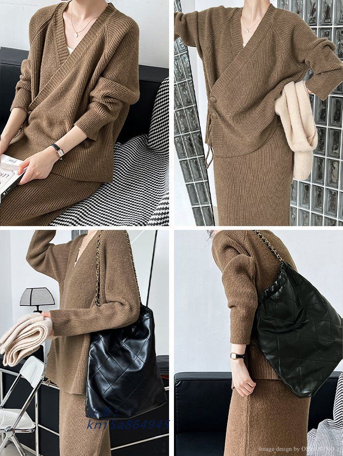 ニット セットアップ スカート カーディガン レディース 上下セット カジュアル 40代 タイト カシュクール きれいめ リブニット 20代 30代 kni5a864945 BLACKFEMALETHERAPIST_ORG