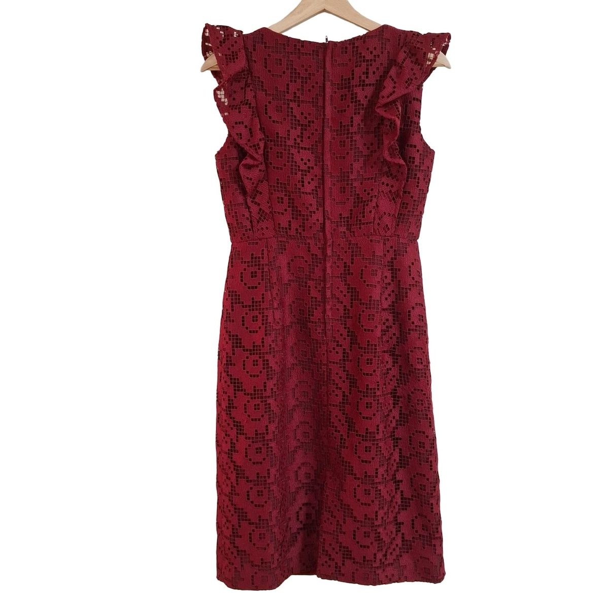 GRACE CONTINENTAL グレースコンチネンタル ワンピース サイズ36 S レディース - レッド クルーネック 半袖 ロング 総レース フリル BLACKFEMALETHERAPIST_ORG