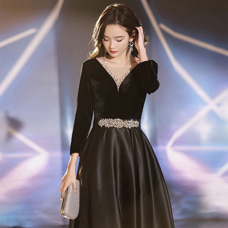 ロング演奏会 結婚式 黒 ワンピース 長袖 パーティードレス イブニングドレス フォーマルの検索結果