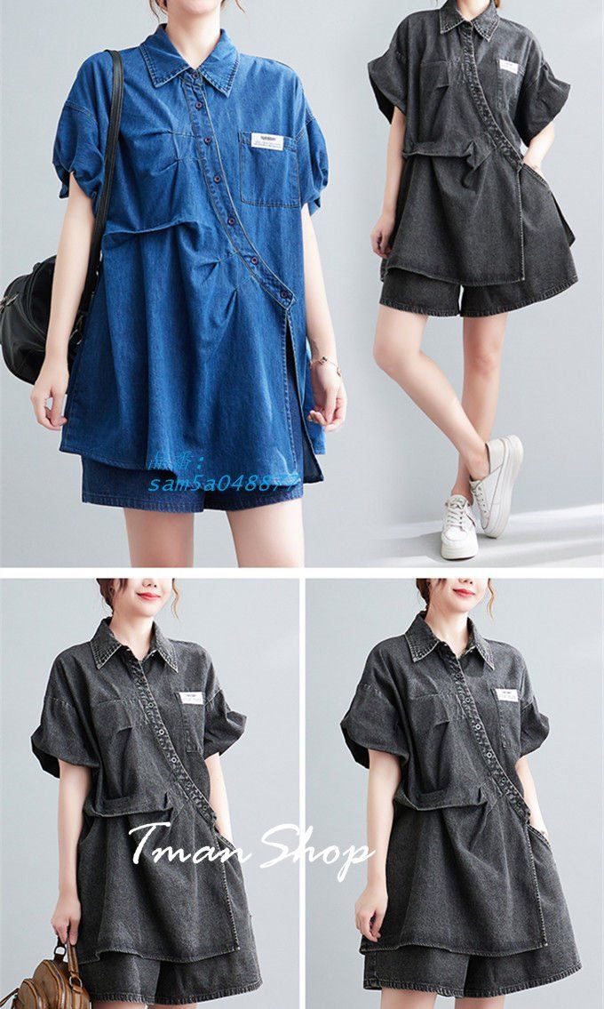 デニムセット セットアップ レディース 半袖 デニムシャツ ショートパンツ ファッション フリル カジュアル 上下セット 大きいサイズ おしゃれ ジージャン 無地 am5a048877 BLACKFEMALETHERAPIST_ORG
