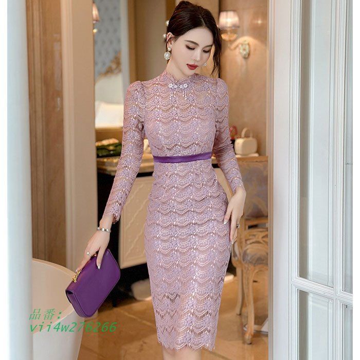 シースルーレース刺繍 ハイウエスト長袖膝丈タイトワンピース 紫 パーティー ドレス キャバ 韓国 セクシー スナック vii4w276266の検索結果