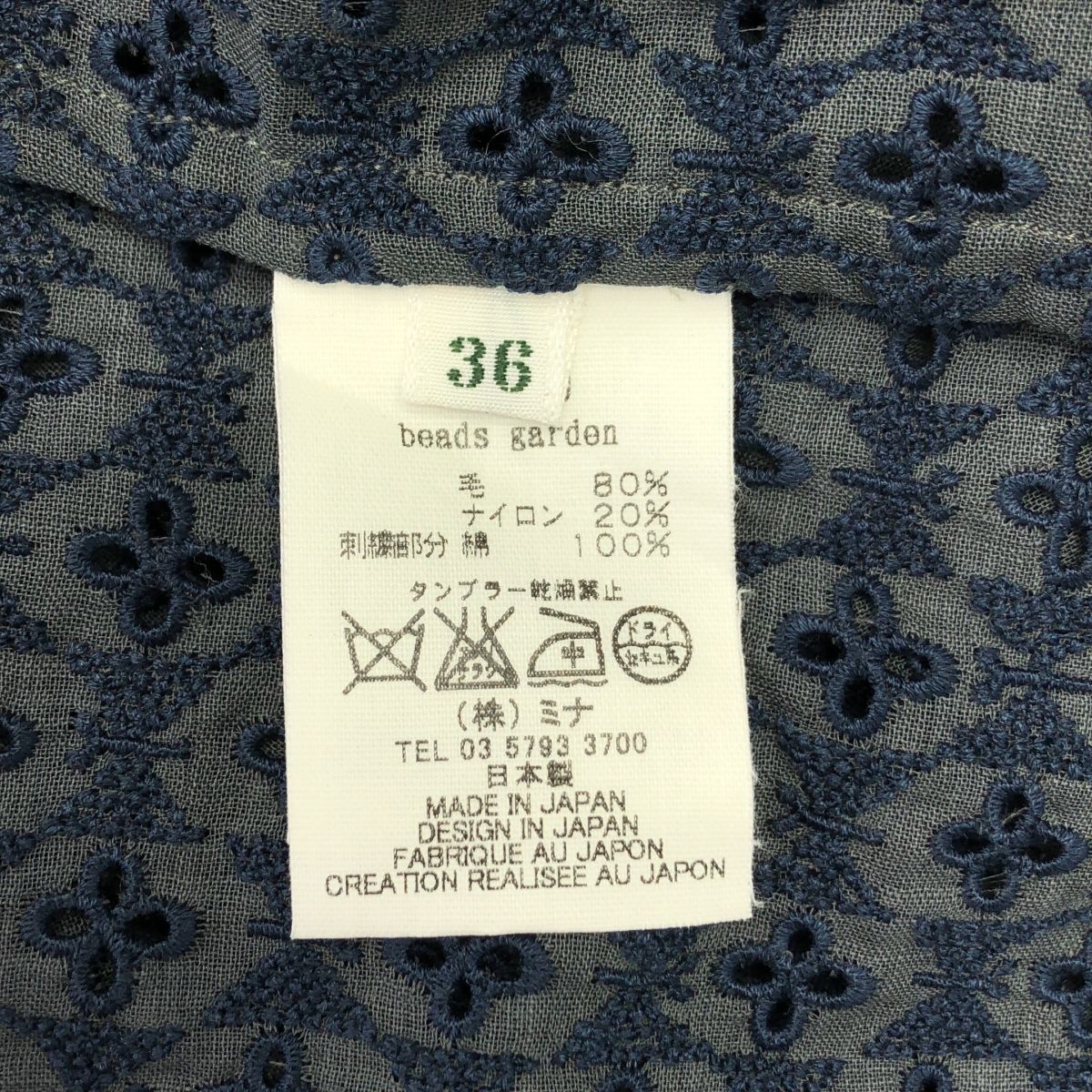 mina perhonen ミナペルホネン beads garden ビーズガーデン エンブロイダリー ボリュームスリーブ ワンピース 36 グレー ネイビー レディースの検索結果