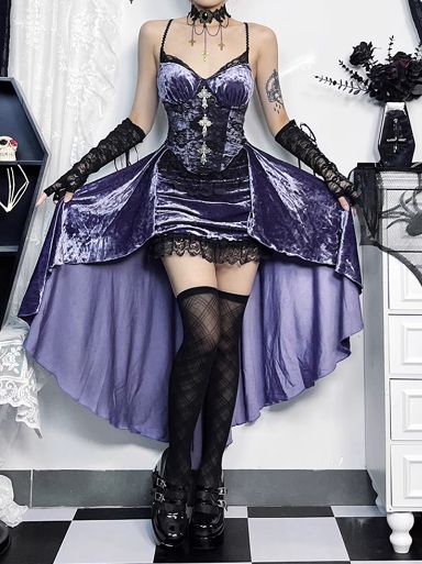V ネック ゴシック風 紫のベロアワンピース オーバーシャツ ロリータ トレーニングドレス ヒップホールドスカート フォーマルドレス メッシュトップス ロングスカートの検索結果