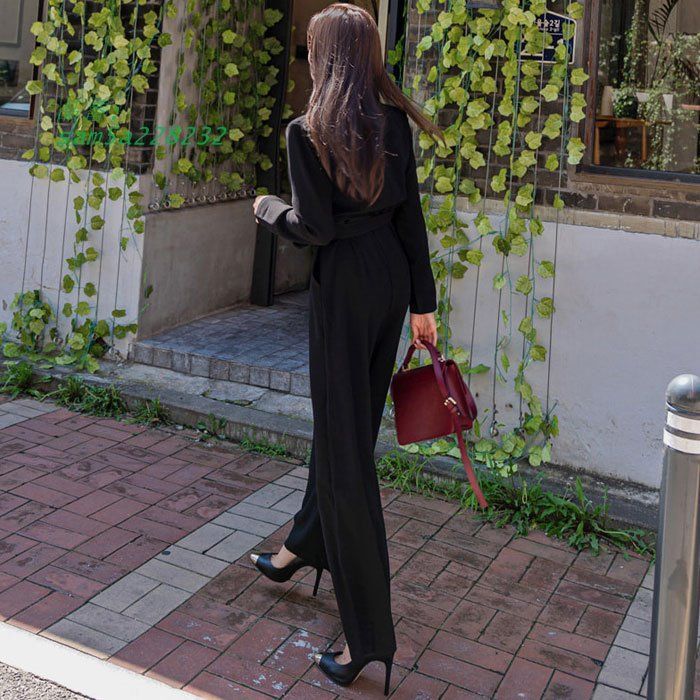 襟付きVネック胸元 ワイドロングパンツ 長袖オールインワンワンピース 黒 大人 上品 きれいめ 韓国 おしゃれ レディース am5a228232の検索結果