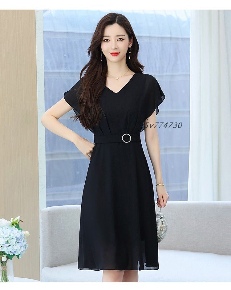 Vネック フ ワンピース 全2色 半袖 シフォン 黒ワンピ 無地 シンプル ひざ丈 ミディアム丈 ウエストマーク 大人 Aライン hax5v774730の検索結果