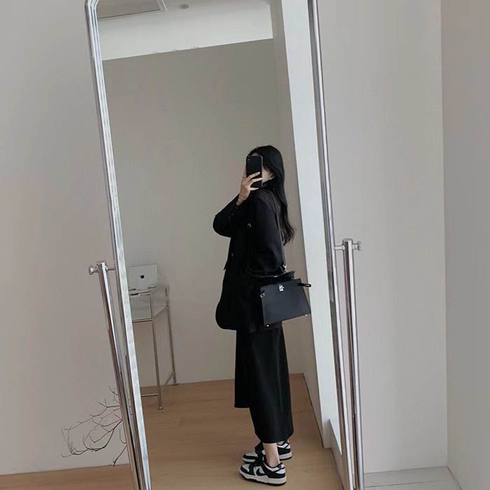 胸元ビジュー付きリボン ハイウエスト切り替え長袖膝丈ドレスワンピース 黒 結婚式 お呼ばれ レディース 韓国 kni4a554003