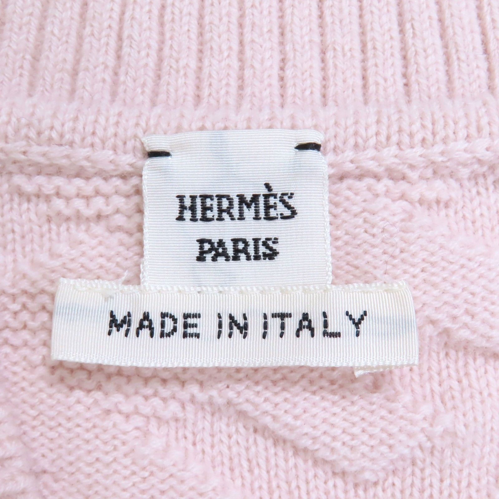 HERMES エルメス 2E2501DE ウール100% Hモチーフ柄 Vネック ひざ丈 半袖ニット ワンピース ピンク 36 イタリア製 レディース BLACKFEMALETHERAPIST_ORG