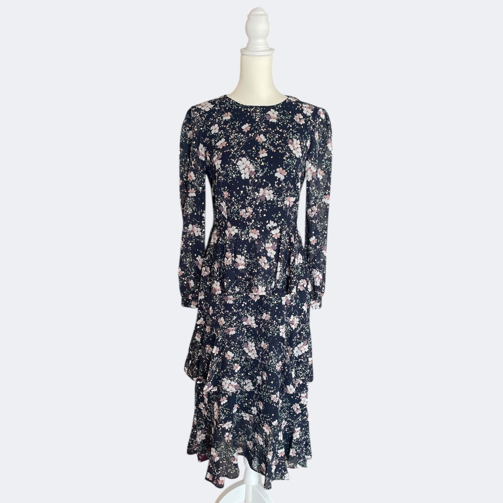 DUSKダスク 上品ネイビー小花柄 ティアードフ ワンピース M-XLの検索結果