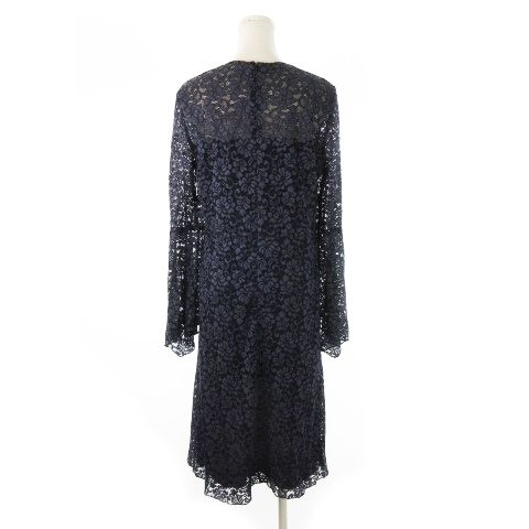 レコパン LES COPAINS 総レースワンピース ひざ丈 長袖 フ スリーブ ビスチェデザイン 44 M 紺 ネイビー CK9 GY18 BLACKFEMALETHERAPIST_ORG
