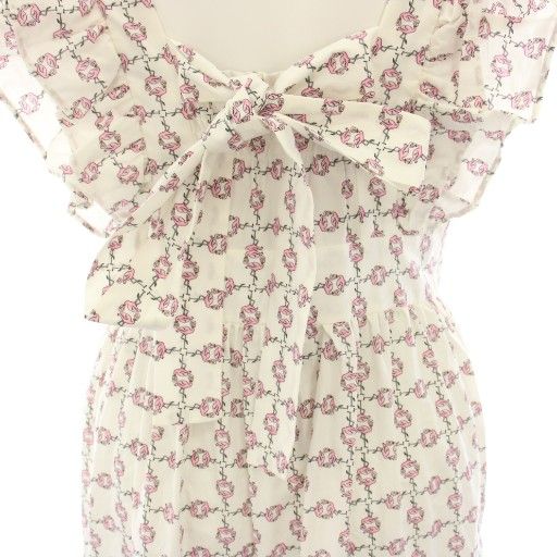 ダブル クロージング ダブスタ DOUBLE STANDARD CLOTHING フラミンゴ柄バックリボンワンピース ロング 半袖 フレンチスリーブ フリル ティアード 36 白 ホワイト ピンク 0201-330-211 A YT BLACKFEMALETHERAPIST_ORG
