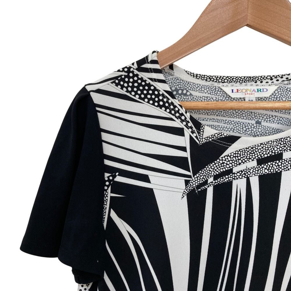 LEONARD SPORT レオナールスポーツ バイ リーフプリント ワンピース サイズ38 ブラック ホワイト レディース 古着 BLACKFEMALETHERAPIST_ORG