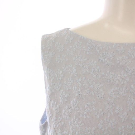 フォクシーニューヨーク FOXEY NEW YORK collection Dress Lris フ ワンピース ひざ丈 ノースリーブ ボートネック 刺繍 総柄 38 水色 ライトブルー BB BLACKFEMALETHERAPIST_ORG