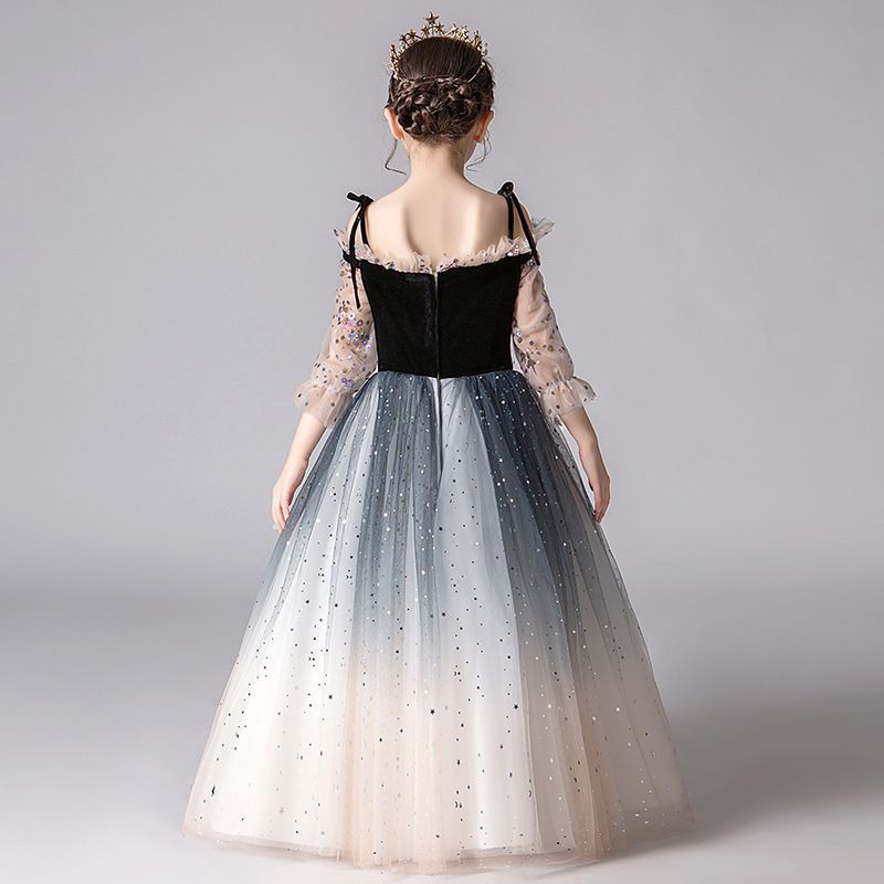 ドレス子供長袖チュールワンピースロングワンピースキッズフォーマル発表会ふんわり感ピアノキラキラーフ ワンピース女の子 BLACKFEMALETHERAPIST_ORG