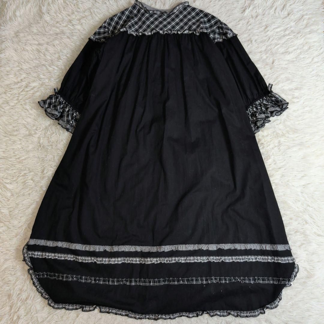 人気 ️PINK HOUSE ピンクハウス ギンガムチェック ピコフリルティアードワンピース 近年 ロング マキシ フ Aライン ゆったり フリーサイズ F 襟付き リボン 五分袖 BLACKFEMALETHERAPIST_ORG