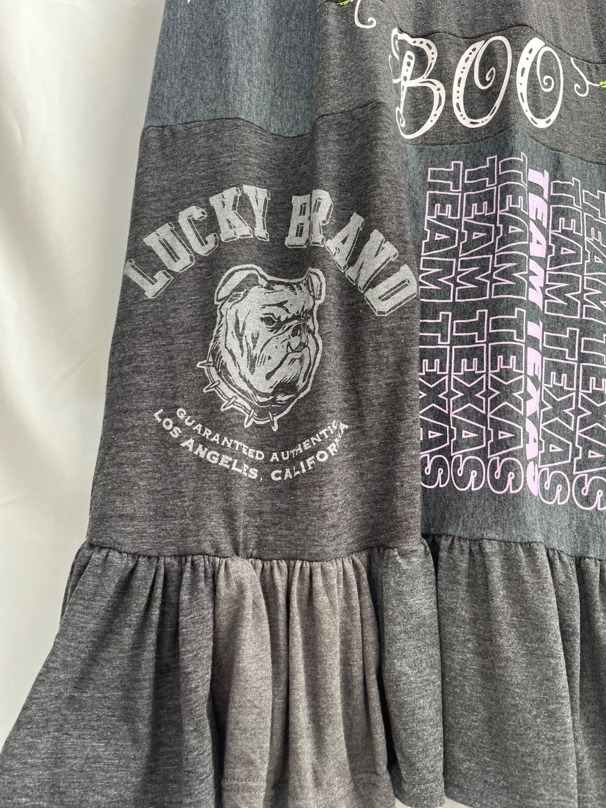 リメイク古着 remakeードッキングワンピース 半袖ロングワンピース ロゴT グレーの検索結果