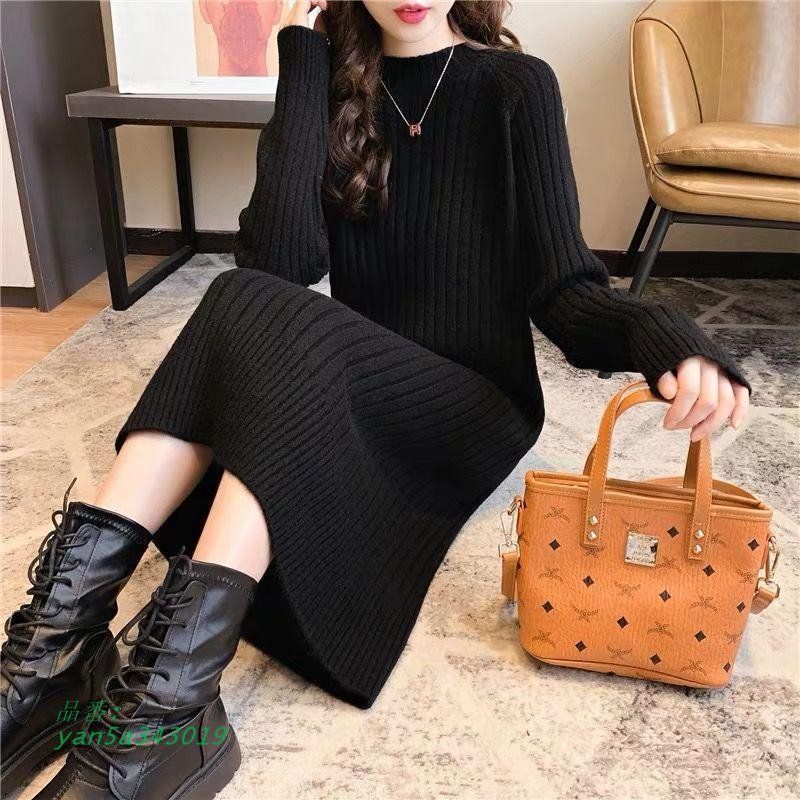 ニットワンピース レディース 無地 クルーネック プルオーバー ロングセーター 秋冬 モダン プリント 膝下 ファッション 厚手 無地 ゆったり 長袖 yan5a343019 BLACKFEMALETHERAPIST_ORG