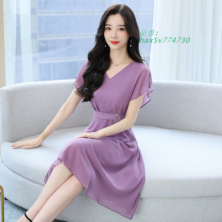 Vネック フ ワンピース 全2色 半袖 シフォン 黒ワンピ 無地 シンプル ひざ丈 ミディアム丈 ウエストマーク 大人 Aライン hax5v774730の検索結果