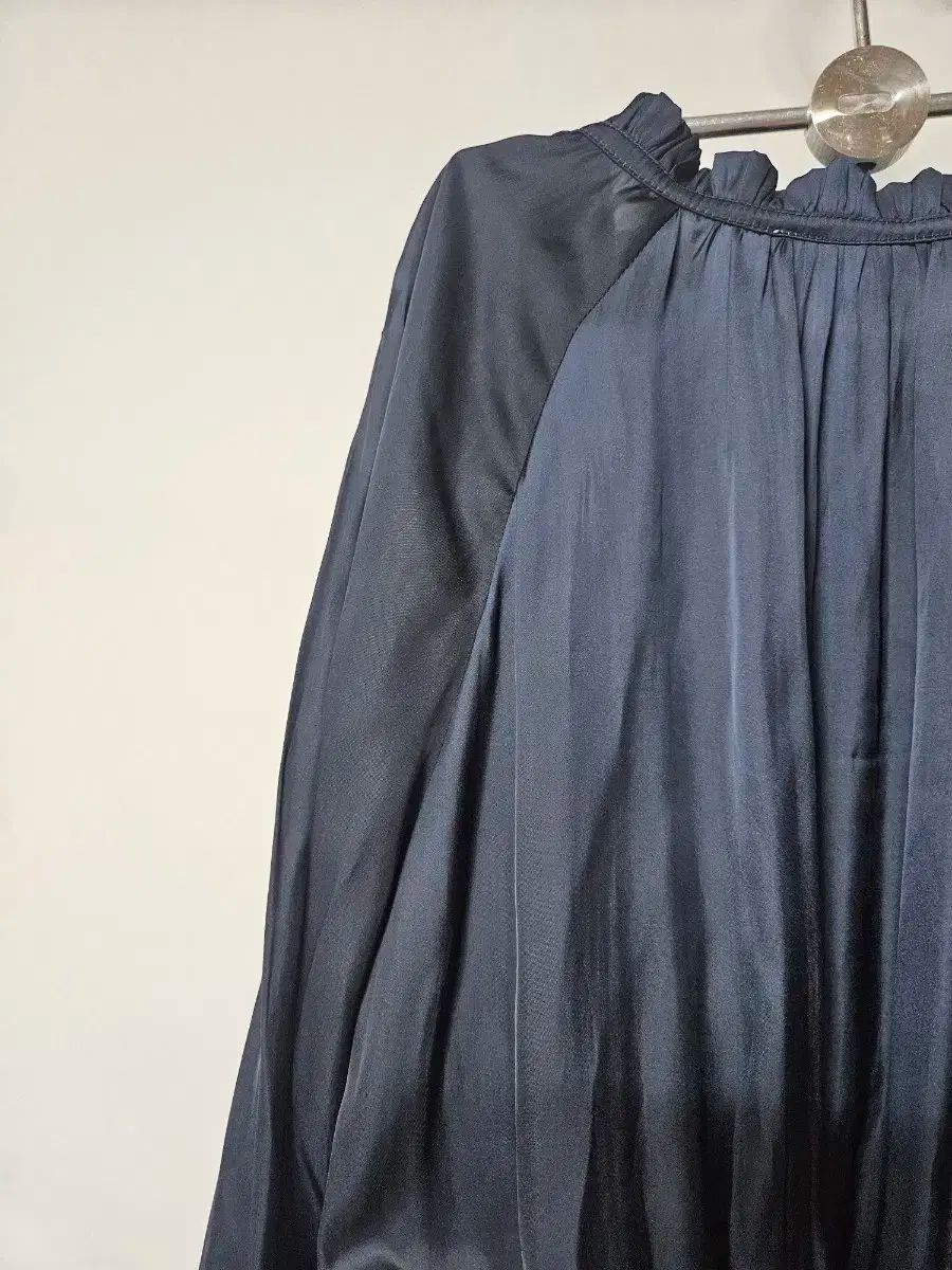 FLICKA フリッカ TOMORROWLAND ワンピース ネイビー 紺 サイズ 1 M 24秋冬 カフスパール ドレス ワンピース 7分袖 クルーネック ティアード ビジュー フ スリーブ Aライン レディース