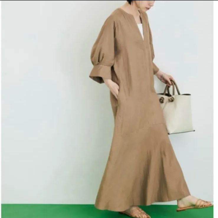 ADAM ET ROPE リネンボリュームスリーブワンピース ブラウンロングワンピース キーネックの検索結果
