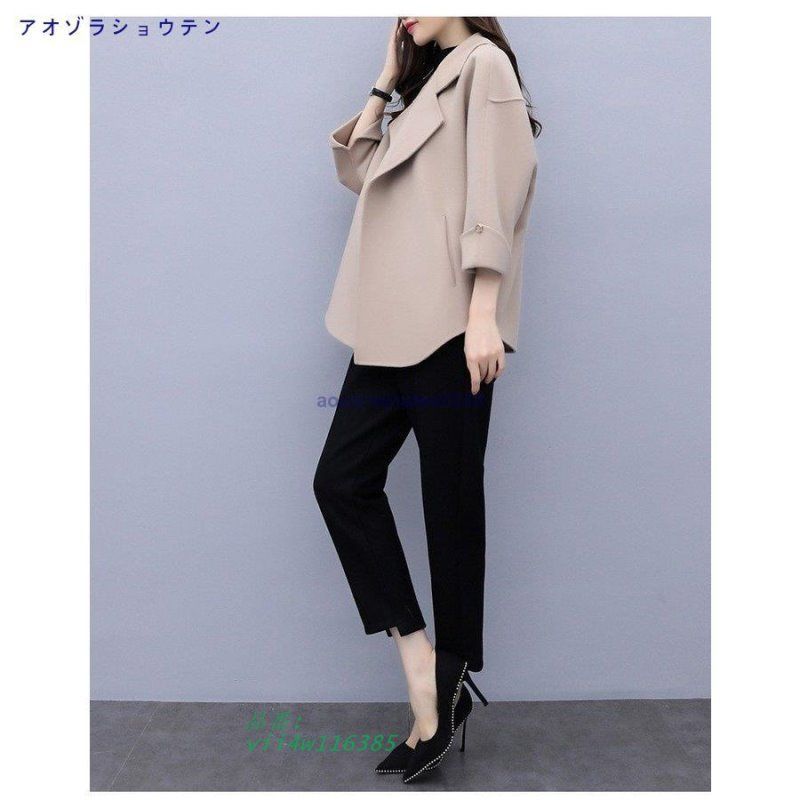 セットアップ レディース 冬 パンツ ラシャコート パンツセット 九分丈パンツ ツーピース 九分袖 上下セット 無地 パンツスーツ 通勤 セット vii4w116385 BLACKFEMALETHERAPIST_ORG