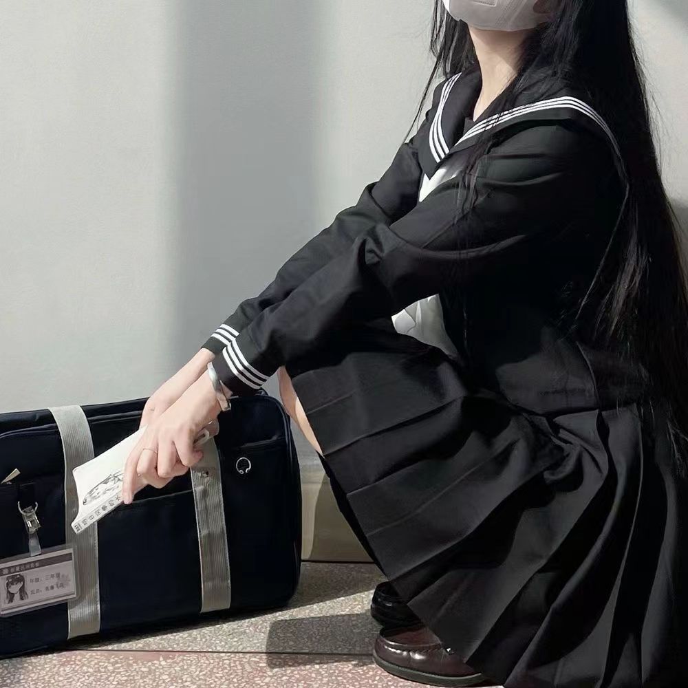 セーラー服 紺色 長袖 女子高生 3点セット ハロウィン 仮装 JK 制服 コスチューム 長袖 前開き 上下セット プリーツスカート 人気 女子制服 本格制服 紺三本 文化祭 卒業式 クリスマス プレゼント yunrui09 BLACKFEMALETHERAPIST_ORG