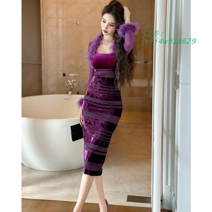 ファー付きシースルー長袖 膝丈タイトドレスワンピース 紫 セクシー ドレス キャバ スナック 服 韓国 vii4w918629の検索結果