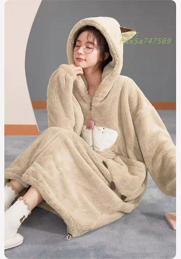 ルームウェア もこもこ 熊 パジャマ 冬 長袖 着る毛布 前開き 寝巻き フード付き ナイトガウン 部屋着 kni5a432145