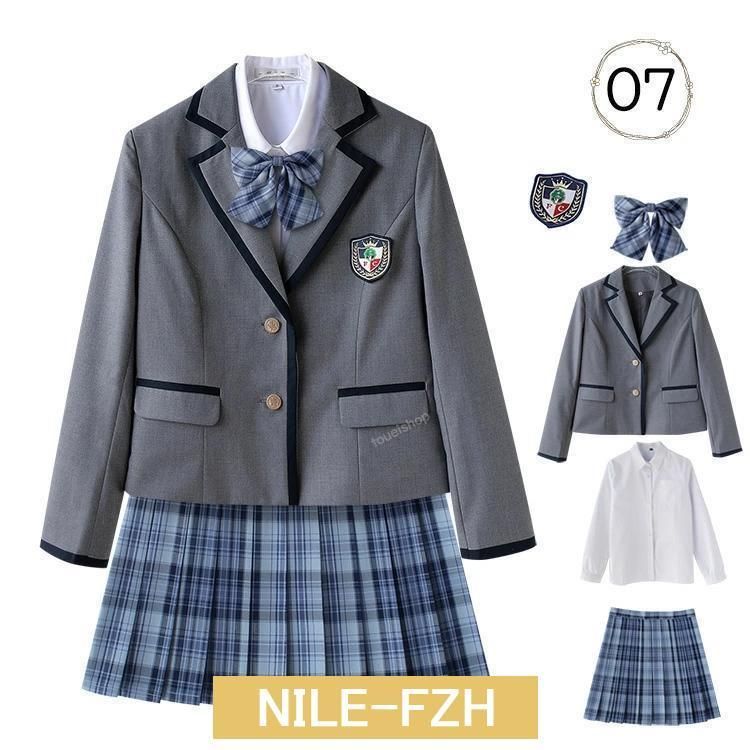 スクールスーツ シャツ 女子高生 全20タイプ 長袖 5点セット カーディガン ネクタイ プリーツスカート 上下セット コスプレ ワッペン 学校制服WP人気注目919