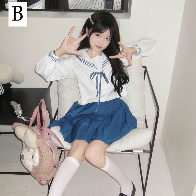 セーラー服 レディース制服 女子制服 コスプレ プリーツスカート 仮装 学生服 コスチューム 長袖 上下セット セーラー襟 女子制服 JK制服 高校生 コスプレ衣装 JK服 学園祭 大人 セクシー 新学期 學院風 中学生 yunrui11