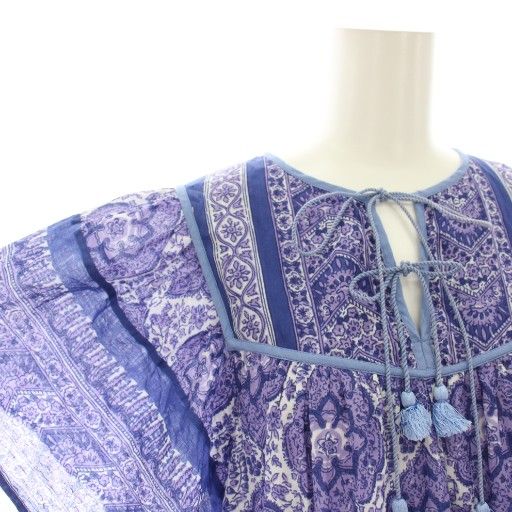 ヌキテパ NE QUITTEZ PAS! 浜島直子 Naoko Hamajima コットンボイルアラベスクプリントフ スリーブドレス ワンピース ロング 半袖 総柄 タッセル S 紫 010431ZE1NH BLACKFEMALETHERAPIST_ORG