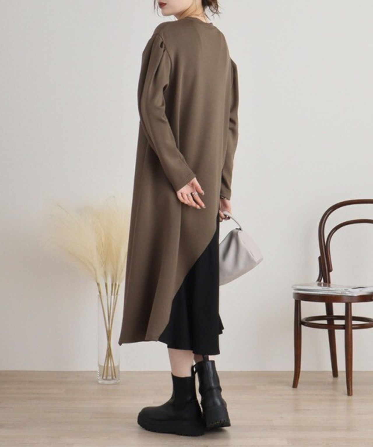 50 PALLAS PALACE パラスパレス 花柄 ワンピース シャツ ロング お呼ばれ デート オフィスカジュアル 食事会 ウール 秋冬春