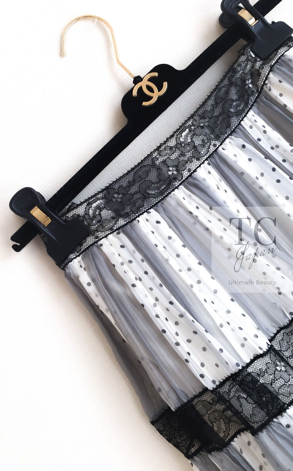 シャネル キャミソール & プリーツ スカート 2点セット CHANEL ホワイト グレー セットアップ カール ラガーフェルド 超 34 36 BLACKFEMALETHERAPIST_ORG