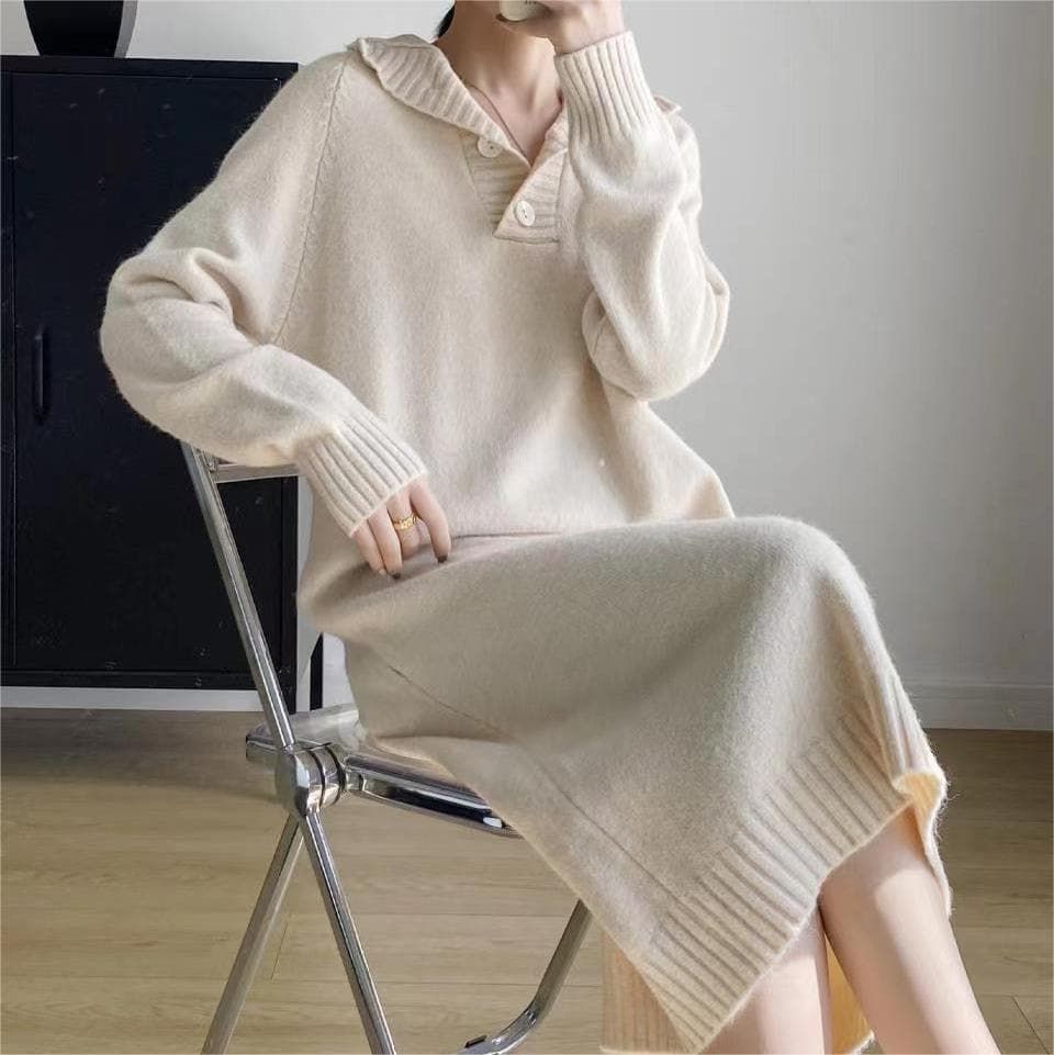 ロングニットワンピース 秋冬 即 OK ニットワンピース Aライン ハイネック ボタン 厚手 暖かい 保温 防寒服 ゆったり 体型カバー 長袖 上品 きれいめ シンプル 体型カバー 無地 伸縮性 洗える ルームgelitai13 BLACKFEMALETHERAPIST_ORG