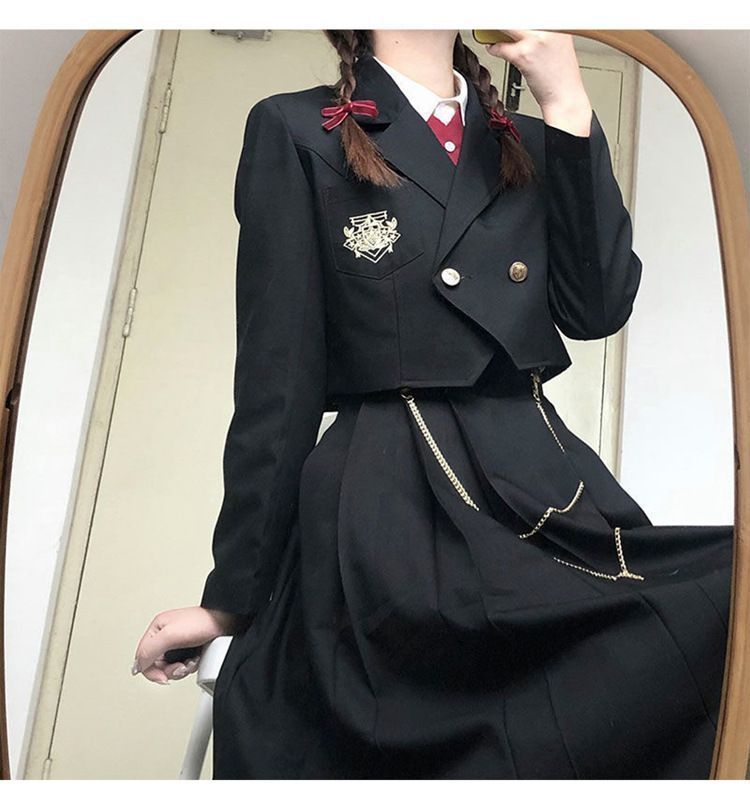 女子高生 制服 学生服 ワンピース 長袖 6点セット バッジ付き スクールスカート スクールワンピース 女子制服 女子高校生 コスプレ JK制服 BLACKFEMALETHERAPIST_ORG