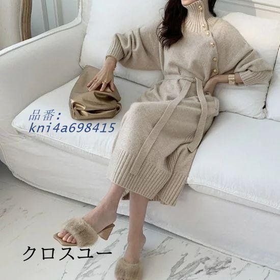 ニットワンピース 冬 ロング タイト 大きいサイズ 秋冬 女子会 ハイネック 体型カバー ゆったり デート ボタンスリット 大人かわいい ウエストリボン kni4a698415の検索結果