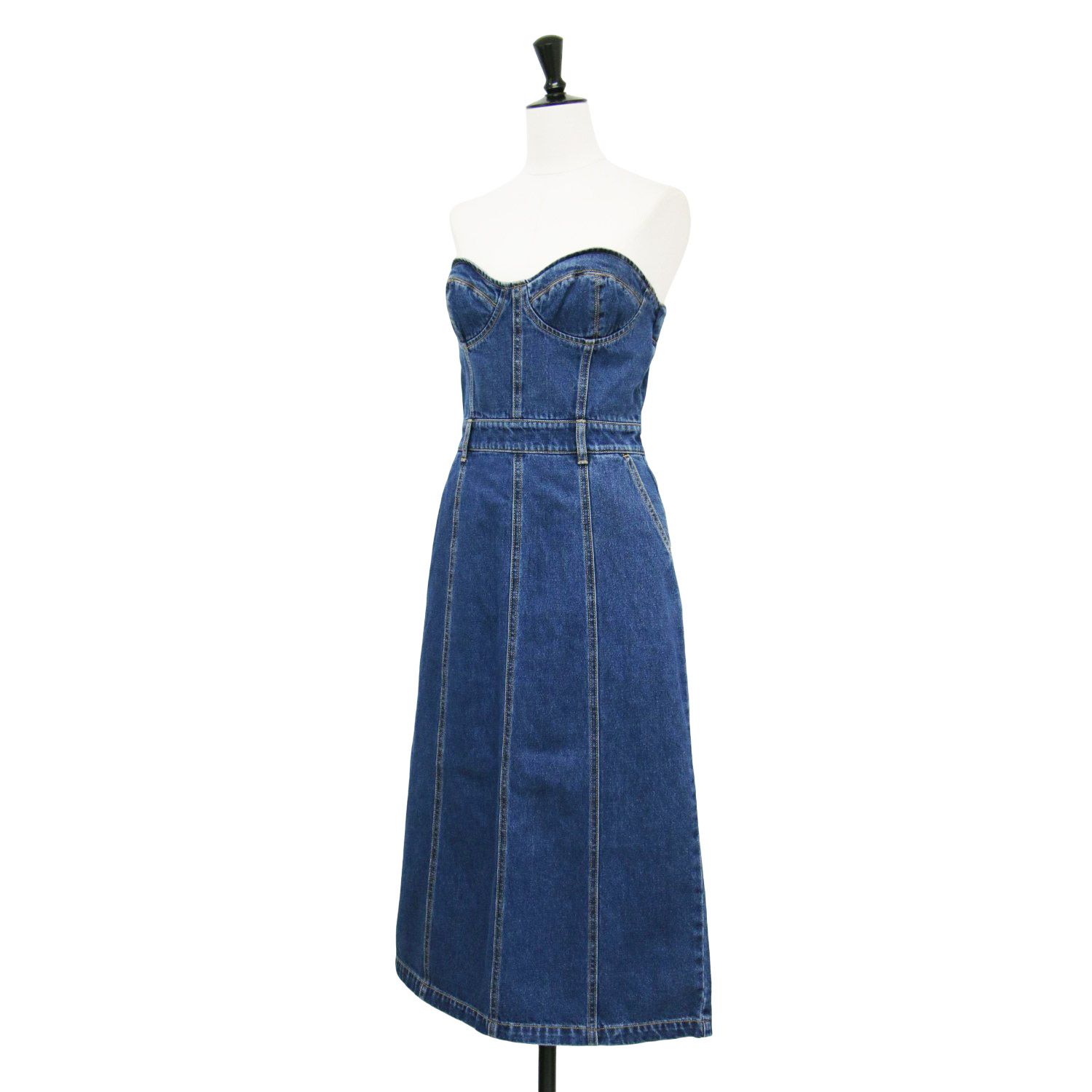 U by SPICK-SPAN ユーバイスピックアンドスパン ワンピース インディゴ サイズ 38 M 20春夏 デニム ベア ワンピース ドレス ビスチェ ミモレ丈 タイト ギャザー コットン トップス レディース BLACKFEMALETHERAPIST_ORG