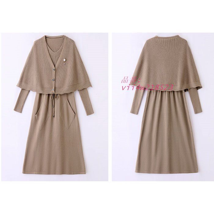 カーディガン風ケープ付き 膝丈長袖ニットワンピース 赤 カーキ 茶 カジュアル デート 韓国 レディース 服装 vii4w218523の検索結果